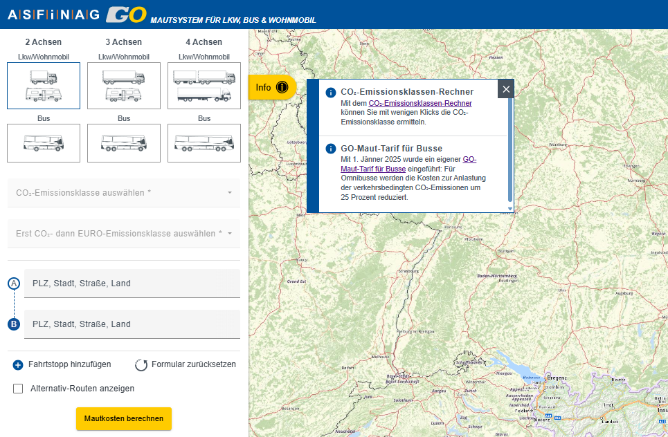 Obliczanie opłaty drogowej za pomocą kalkulatora opłaty drogowej lub kalkulatora opłaty drogowej light.